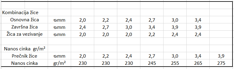 Za izradu koristimo žicu debljine 4 i 5 mm a standardni otvor okca je 50x50mm i 100x100mm.